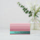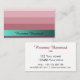 This delicate and classy card is based on gradient stripes coloured rose red, and a horizontal teal green banner carrying your name. The rear side is clean with black text on white background, but where your name is coloured rose red, with a black shadow effect.