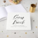 This landscape hardcover wedding guest book featuring a modern calligraphy font is printed in silver grey placed on a white background and will be fully customised with your name, wedding date / place and even a personal message or quote on the back.