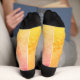 Step up your style with these gradient sunset crew socks, blending warm golden hues with soft pinks for a bold yet sophisticated look. Designed for comfort and durability, these high-quality socks feature reinforced black heels and toes, ensuring long-lasting wear. Perfect for casual outfits, business attire, sports, or lounging at home, these socks make a unique fashion statement. Whether you're looking for a stylish gift, a fun accessory for corporate events, or an eye-catching addition to your wardrobe, these socks offer both personality and comfort.