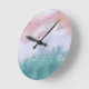 The clock did not take as long to arrive as I thought it might and was extremely well packaged. I didn't do the measurements so I didn't realize it is a little smaller than the average clock but that does not matter (just make sure you check if that's important to you).It is really nifty! It seems very solid and well made not flimsy at all. It has been going well and has kept good time in its few weeks on my wall. Nice product. Gets noticed too! Nicer in real life than the picture but true to the picture