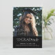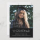 This graduation announcement features a large photo and a clever message of gratitude. The announcement reads "Filled with GRADitude" and includes a thank you and "signature" in a handwriting font. The black background can be modified to match your school colours. The back has an additional photo and space for a message or more details. This graduation announcement works especially well for those completing advanced degrees to share their appreciation for the support they've received over the course of their studies.