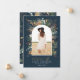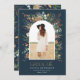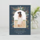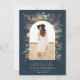 Graduate blue and gold modern elegant watercolor dried botanical floral muted colours holiday arch 1 photo announcement card.Navy blue backer