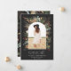 Graduate black modern elegant watercolor dried botanical floral muted colours holiday arch 1 photo announcement card.