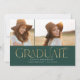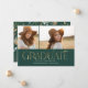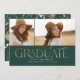 Graduate green modern elegant watercolor dried botanical floral muted colours holiday 2 photo announcement card.