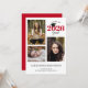 This clean and modern graduation invitation offers a 3 photo collage on a white background. The design is accented with the colour red and offers custom text on the front and back.