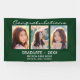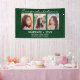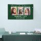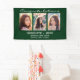 This custom graduation banner to celebrate your graduate features a photo collage of three photos on a green background. Above in white script it reads "Congratulations" and below "graduate 2023" with your name and school to personalise. Designed by artist Susan Coffey