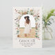 Graduate cream and green modern elegant watercolor dried botanical floral muted colours arch 1 photo announcement card. Contemporary modern typography.