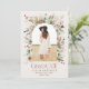 Graduate rust brown terracotta modern elegant watercolor dried botanical floral muted colours arch 1 photo announcement card. Contemporary modern typography.