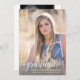 This graduation party invitation offers a vertical photo frame that fills the front and is accented with a modern handwritten style text overlay: GRADUATE. The backside offers second photo frame and custom text for your party invite.