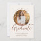 Graduate Calligraphy College Photo Graduation Announcement. Featuring a round placeholder photo with "class of" curved over the top and "graduate" in chic modern calligraphy. This design combines terracotta and beige hues.