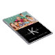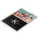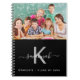 A chic black background. Personalise and add your own photo, a name, monogram letter and a text. The name is written in white with a large modern hand lettered style script with swashes. The monogram letter in grey. To keep the swashes only delete the sample name, leave the spaces or emoji's in front and after the name