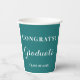 Simple paper cups, perfect for a graduation party. Easy to customise, they show three lines of text: Congrats! - Graduate - Class of 20xx.