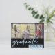 Graduate Collage | Blue Script 3 Photo Keepsake Invitation Postcard