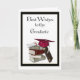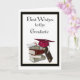 Congratulation graduate card. Red cap and diploma on stack of books.
