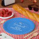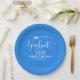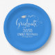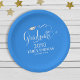 This design features a graduation paper plate, with a modern graduate grad party design, with fancy calligraphy font script, simple trendy mortarboard typography, stylish and chic, minimal minimalist senior celebration design, great for high school or college parties classic graduating class of your year, a great way to celebrate with custom party supply supplies, this blue classic classy text paper plate is a great addition.