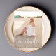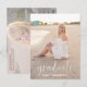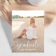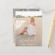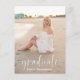 This design features a graduate invitation postcard template, with a simple, 2 photo template, perfect for high school or college, an elegant, with a minimalist calligraphy script typography, a trendy grad graduation party
