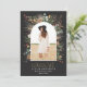 Graduate black modern elegant watercolor dried botanical floral muted colours holiday arch 1 photo announcement card. Gold effect modern typography.