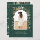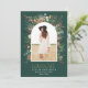 Graduate green modern elegant watercolor dried botanical floral muted colours holiday arch 1 photo announcement card. Gold effect modern typography.
