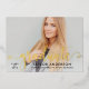 Stylish and elegant graduation announcement card and party invitation features a senior photo with "graduate" real gold foil script overlay. Personalize the modern custom text with your grad's name, school, and class year. This two-sided card design includes graduation party invitation wording on the back.
