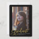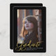 Elegant and modern graduation announcement card template for high school or college graduates! You can add your photo in the middle. There is a text overlay in faux gold script font that says "Graduate" against a black background. Customise this product by adding the graduate's name, school, graduation date.