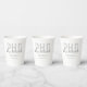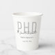 PhD graduation paper cups that feature the graduate’s name, field of study, and graduation date. They include the name in a handwriting script font and a black and grey design. Add these cups to your party as you celebrate this major milestone.