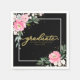 Graduate Hot Pink Floral Graduation Party Black Napkin