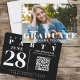 This design features a graduate graduation grad modern, a minimalist minimal simple typography, a grad photo picture senior elegant, a graduation mortar board mortarboard cap, a simple grad party photo invitation, a high school or college senior, a basic black and white template, a trendy stylish modern typography, a white text photo overlay font, a simple graduation photo invites