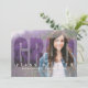 This design features a graduation announcement with a modern minimalist design, perfect for high school or college, with the class of 2024, a trendy script, a simple, 2 photo template with unique typography, with grad graduation party details, and a QR code scan me template.