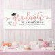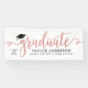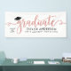Elegant and glamourous custom graduation banner sign celebrates your grad in style! Design features a grad cap, "Graduate" in modern faux rose gold foil script, and modern custom text that can be personalised with the graduate's name, class year, and school. White background colour can be modified.