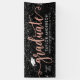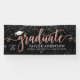 Elegant and glamourous custom graduation banner sign celebrates your grad in style! Design features a grad cap, "Graduate" in modern faux rose gold foil script, and modern custom text that can be personalised with the graduate's name, class year, and school. Includes a border of sparkling silver and white confetti. Black background colour can be modified.