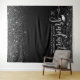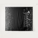 Elegant graduation party backdrop sign celebrates your grad in style! Design features a grad cap, "Graduate" in modern faux silver foil script, and modern custom text that can be personalized with the graduate's name, class year, and school. Includes a border of sparkling silver and white confetti. White text, cap, and black background colors can all be modified.