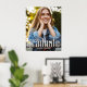 This design features a graduation graduate grad party, for high school or college, a graduate photo picture two 2, a simple minimalist minimal style, with white text overlay font script, a senior student boy or girl, a yard signage décor to celebrate celebration, a cool unique block text font, a simple modern block text typography, a cool unique simple yard sign