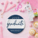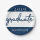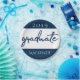 Sophisticated graduation party overlay template with accents in a classic white and dark navy blue palette. The design features a chic deep blue hand-lettered brush script “graduate” typography on a white background along with the grad’s name and graduation year. Great way to honour your elementary middle school, high school, or college grad! #Classof2019 #bound