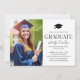 Modern graduation invitation featuring a full photo layout paired with bold “Graduate” typography in a clean black and white design. Personalise with the graduate’s name, school, and class year. Backside includes coordinating party details with a simple mortarboard icon for a timeless, minimalist look.