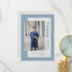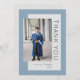 These 5" x 7" graduation thank you cards feature a placeholder for your favourite photo on a blue and light grey background with a place your name and graduation year. The back is left blank in order to add a personalised message.