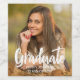 Graduate is written in white handwritten script over your senior portrait photo makes a chic, modern graduation party wine label. Customise these cute plates with your high school or university class year 2025 under the bold typography and add a cute photograph of your senior.