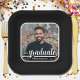Add your favourite photo to these graduation square black party paper plates featuring your name, class year and the word graduate in chic lettering on a blue background. MORE designs and colours done in our collection.