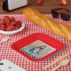 Add your favourite photo to these graduation square red party paper plates featuring your name, class year and the word graduate in chic lettering on a blue background. MORE designs and colours done in our collection.