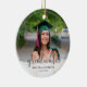 This is a perfect keepsake gift for this year's graduate. The design features a photo frame that fills the ornament and modern grey calligraphy for the word "graduate". Custom text allows you to personalise with the graduate's name and year.