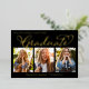 Real gold foil graduation photo collage announcement invitation, an elegant and stylish calligraphy script design, with simple typography on the back, perfect for high school or college, add your graduate's class of, great for a grad party invite, with a white photo overlay on the back, a classic design to showcase your senior pictures