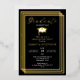 Celebrate your graduate in bold, modern style with this real gold foil on a black background graduation party with photo and plans / details design. Features a front triple stair-stepped rectangular geometric frame to frame your party details. Design also includes a foil graduation cap and "Graduate" (uneditable) script text. Composite design by Holiday Hearts Designs ( rights reserved). Placeholder template photo courtesy Unsplash.