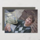This design features a graduation photo class of your year with a 1 one-picture layout design. with a QR code for a website or online URL, a modern and cool design, with trendy script typography, a simple graduate landscape stamp stamped style, great for grad party announcements and invitations, with mortarboard unique hipster cap, and gold white text overlay, for high school or college commencement, a senior student with a rustic look, congratulations celebration.
