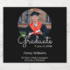 Toast to your graduate's success with these custom graduation wine bottle labels, designed to add a fun and individual touch to your celebration. Set against a classic black background, the labels feature a photo of your choice, with the graduate’s name, 'class of' year, degree and institution name. It’s an elegant way to personalise drinks bottles for graduation parties, dinners, or as thoughtful favours for guests. Ideal for college and university graduates, this custom label makes a lasting impression and a memorable keepsake of this special occasion.