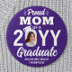 Show your joy for the graduating senior with a stylish custom photo "Proud Mom" round graduation button. The picture and text on this template are simple to personalize. The colors and font styles can be changed with the Zazzle Design Editor tool. Featuring elegant modern typography and stylish calligraphy script, the purple and white design includes the graduate's photo, name, and class year. This keepsake accessory adds a unique touch to a commencement ceremony or graduation party outfit. Congratulations to the graduate!