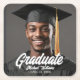 Graduate Photo w Bold Script Graduation Party Square Paper Coaster