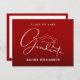 Cardinal red flat, two-sided thank you note cards feature your name, class year, a graduation hat over the word Graduation in white on the front and plenty of room on the back to write a handwritten message or compose a message to be printed. MATCHING items and more colours in our collection.
