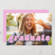 This design features a graduate invitation, a photo template, with a pink retro style typography, retro, minimalist, perfect for high school or college graduations, with a trendy, high school graduate, grad graduation party,