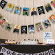 Celebrate your graduate and/or decorate his or her graduation party with this personalised photo bunting flags garland featuring 12 pictures, class year and CONGRATS NAME in your choice of colours (shown in white on black). Change text, graphics and background colours in EDIT to school colours or coordinating party theme colours. This is an easy and fun way to showcase pictures of your graduate as part of your party decorations. ASSISTANCE: For help with design modification or personalisation, contact the designer BEFORE ORDERING via the Zazzle Chat MESSAGE tab or email makeitaboutyoustore@gmail.com.