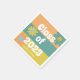 Decorate your graduate party with these Graduation 2023 Party Retro Daisies Girls Personalised Napkins. Each is designed with colours of trendy orange, teal and yellow gold stripes. The text is customisable "Class of 2023" in bold white curvy lettering. Three large fun daisy flowers are over the stripes. Graduate's name is on the lower centre. Click the personalise further option and enter name.