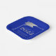 Elegant personalised, custom colour CLASS OF 2023 graduation party paper plates with CONGRATULATIONS and your graduate's name accented with a faux metallic silver 2023 and graduation cap or mortarboard in your choice of background colour (shown in Royal Blue) you can change to a school colour or coordinating party theme colour. ASSISTANCE:  For help with design modification/personalisation, colour change, transferring the design to another product or would like coordinating items, contact the designer BEFORE ORDERING via Zazzle Chat or makeitaboutyoustore@gmail.com.